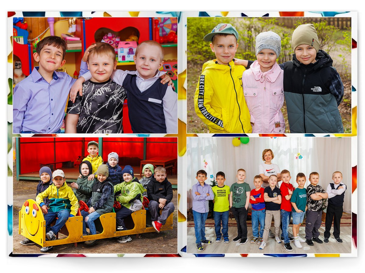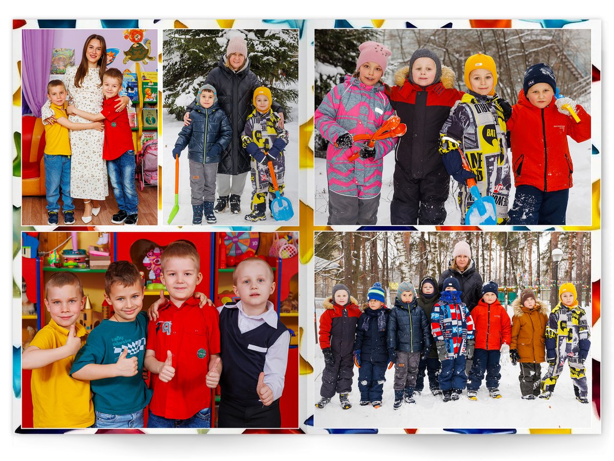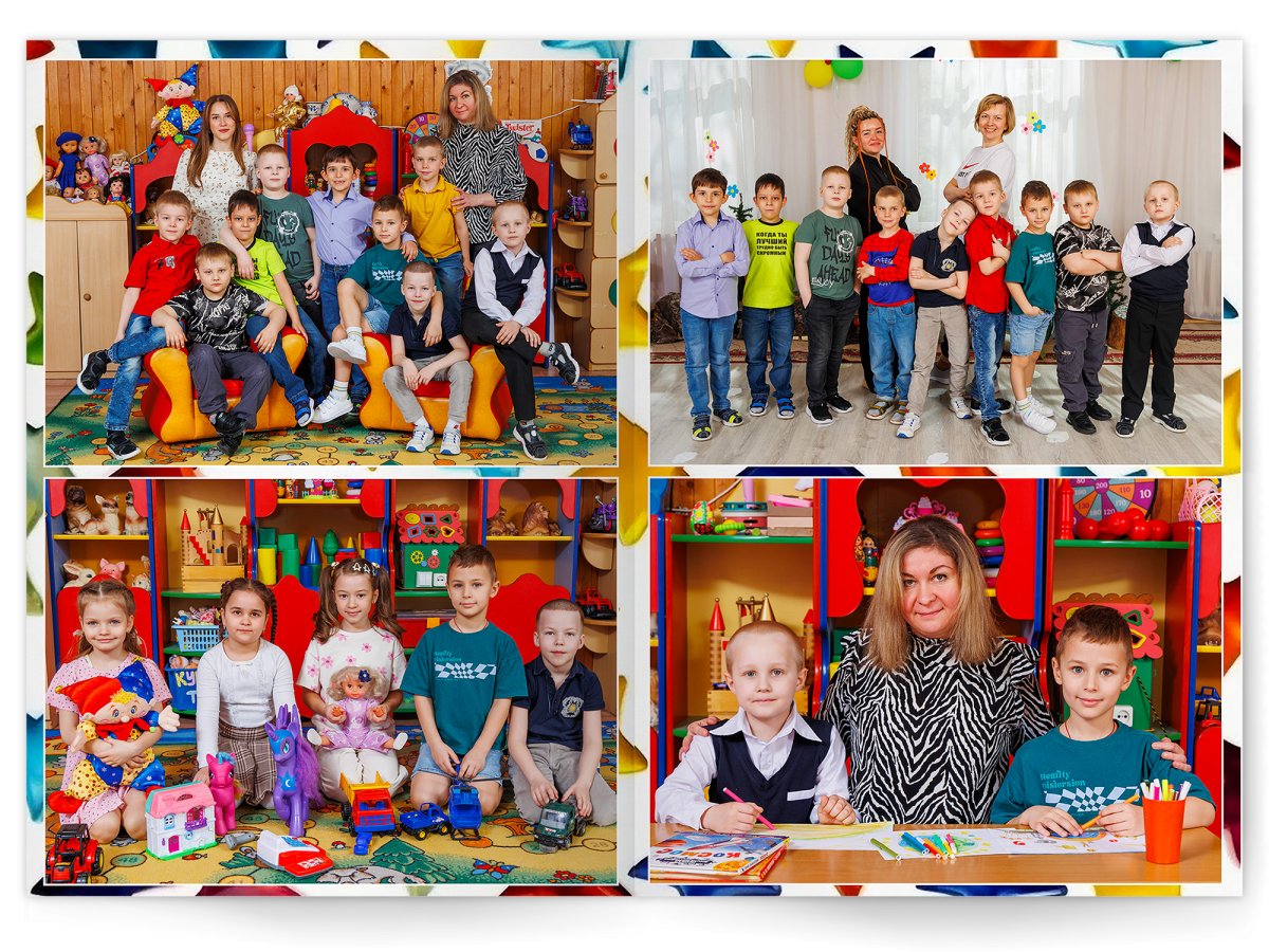 • Портреты всех детей и воспитателей на развороте или странице