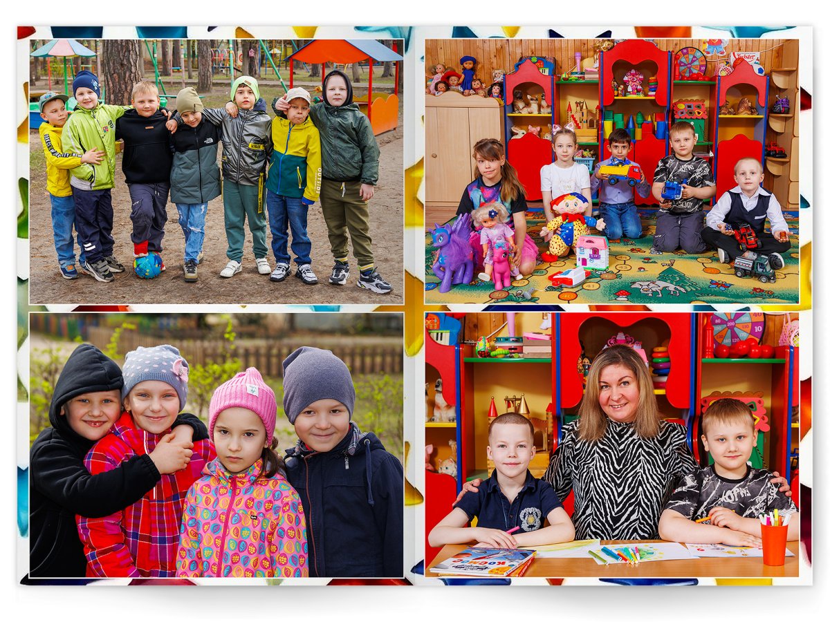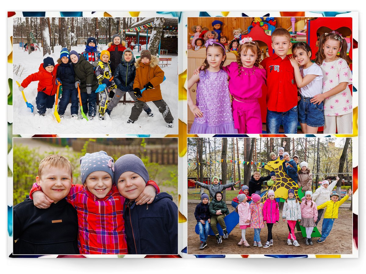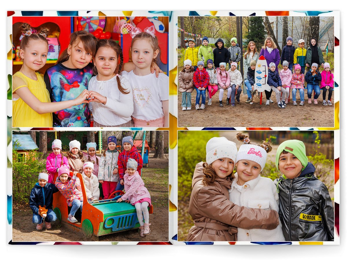 • Портреты всех детей и воспитателей на развороте или странице