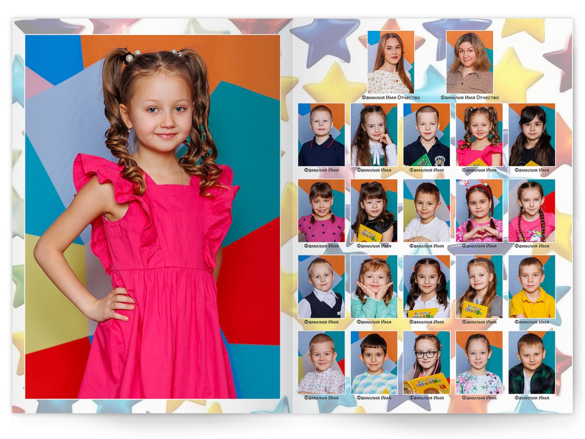 • Портреты всех детей и воспитателей на развороте