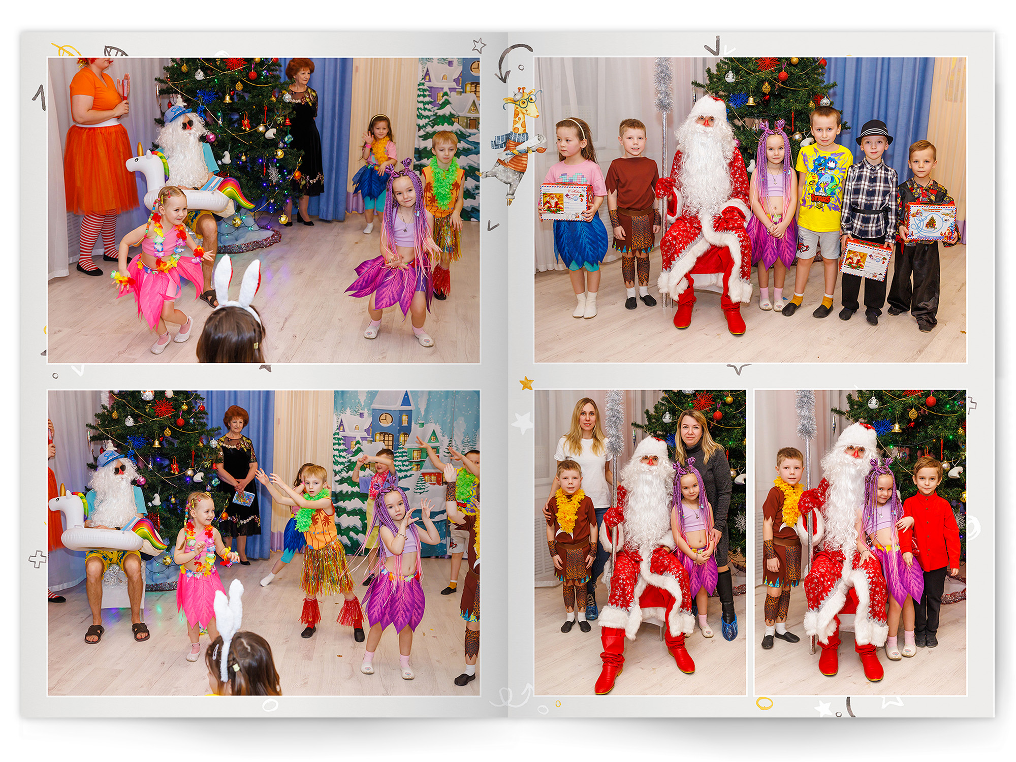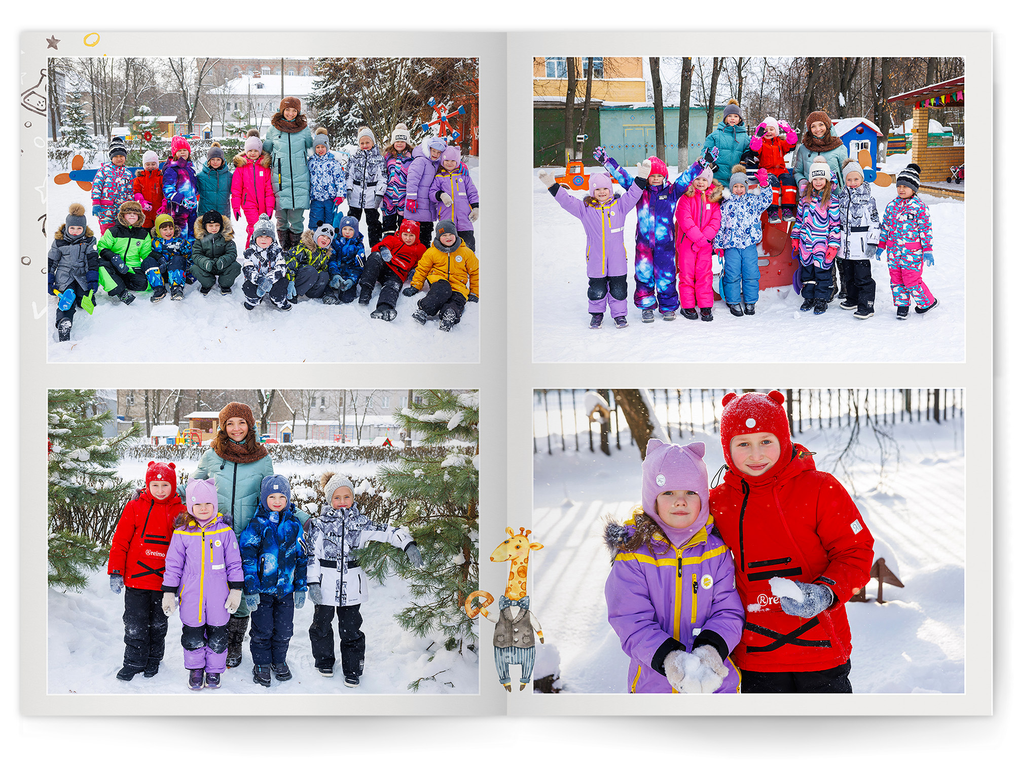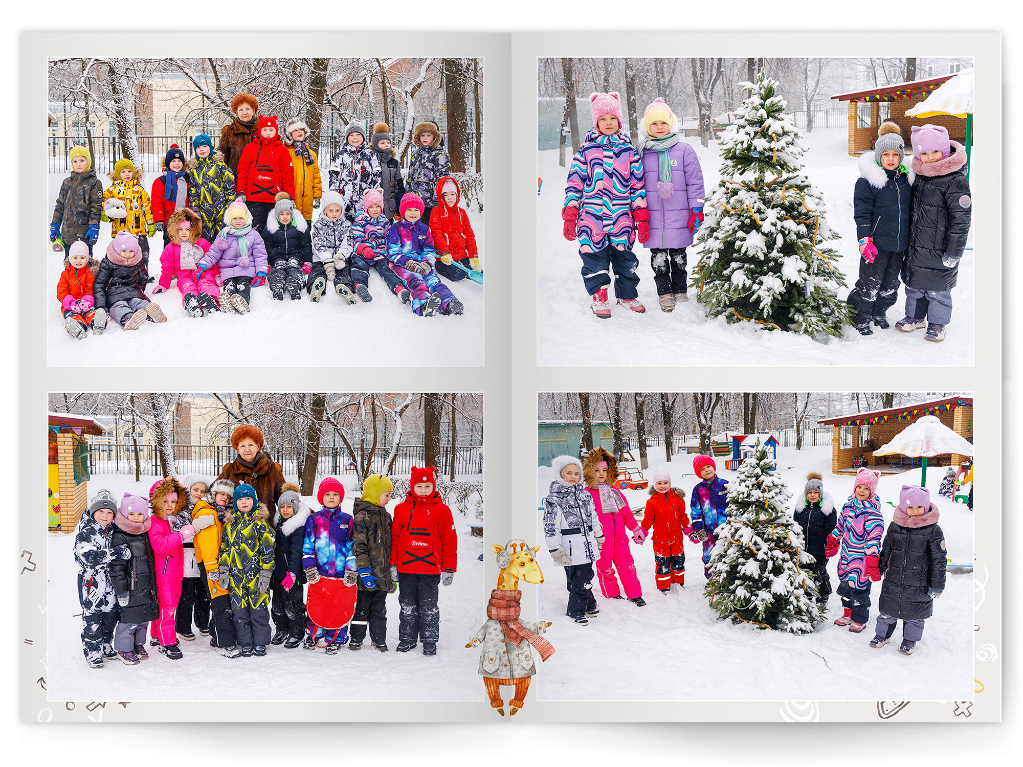 • Дополнительные развороты с фотографиями на ваш выбор +450 ₽/разворот