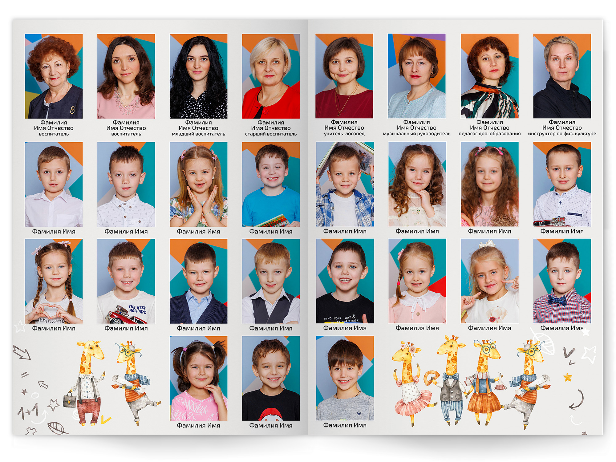 • Оформление альбома выбирается из представленных на сайте, адаптируется под конкретную группу и едино для всех (см в конце страницы)