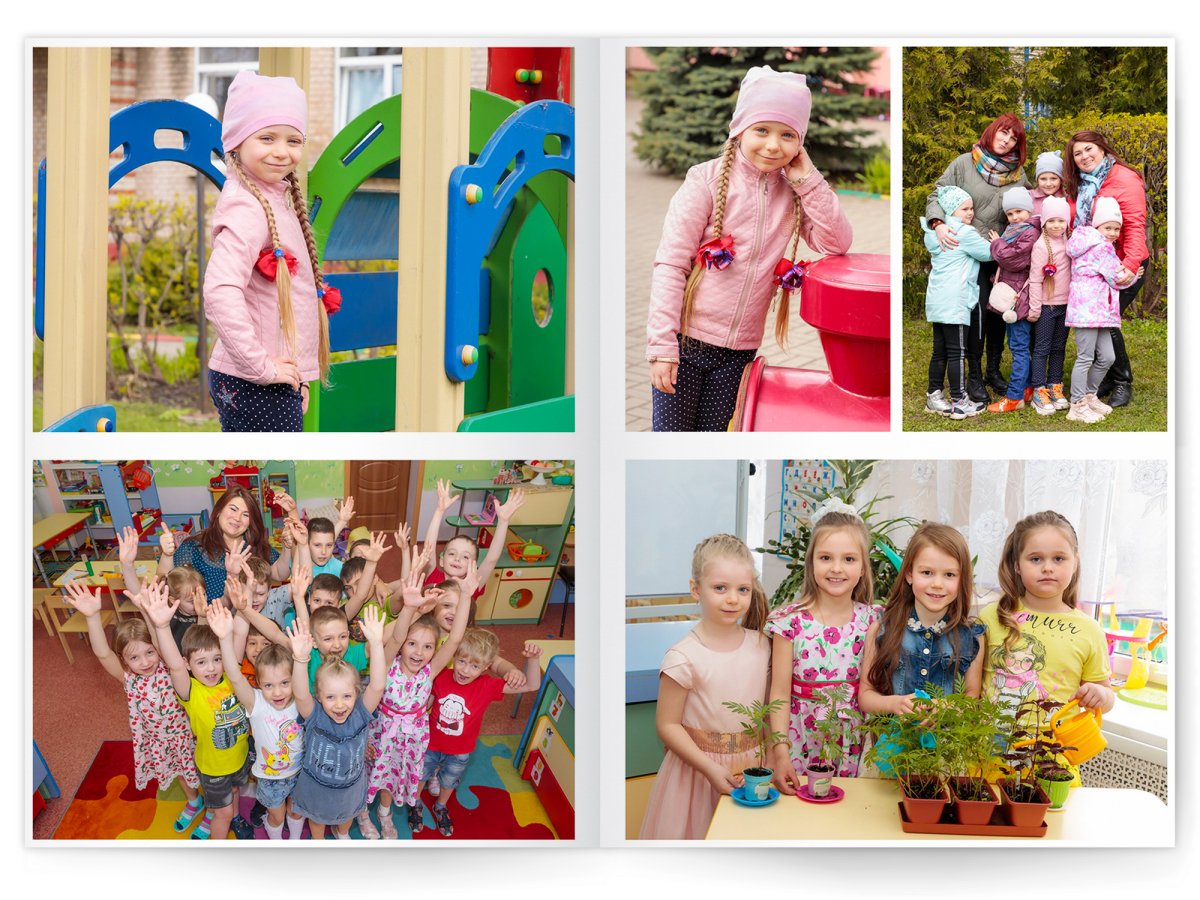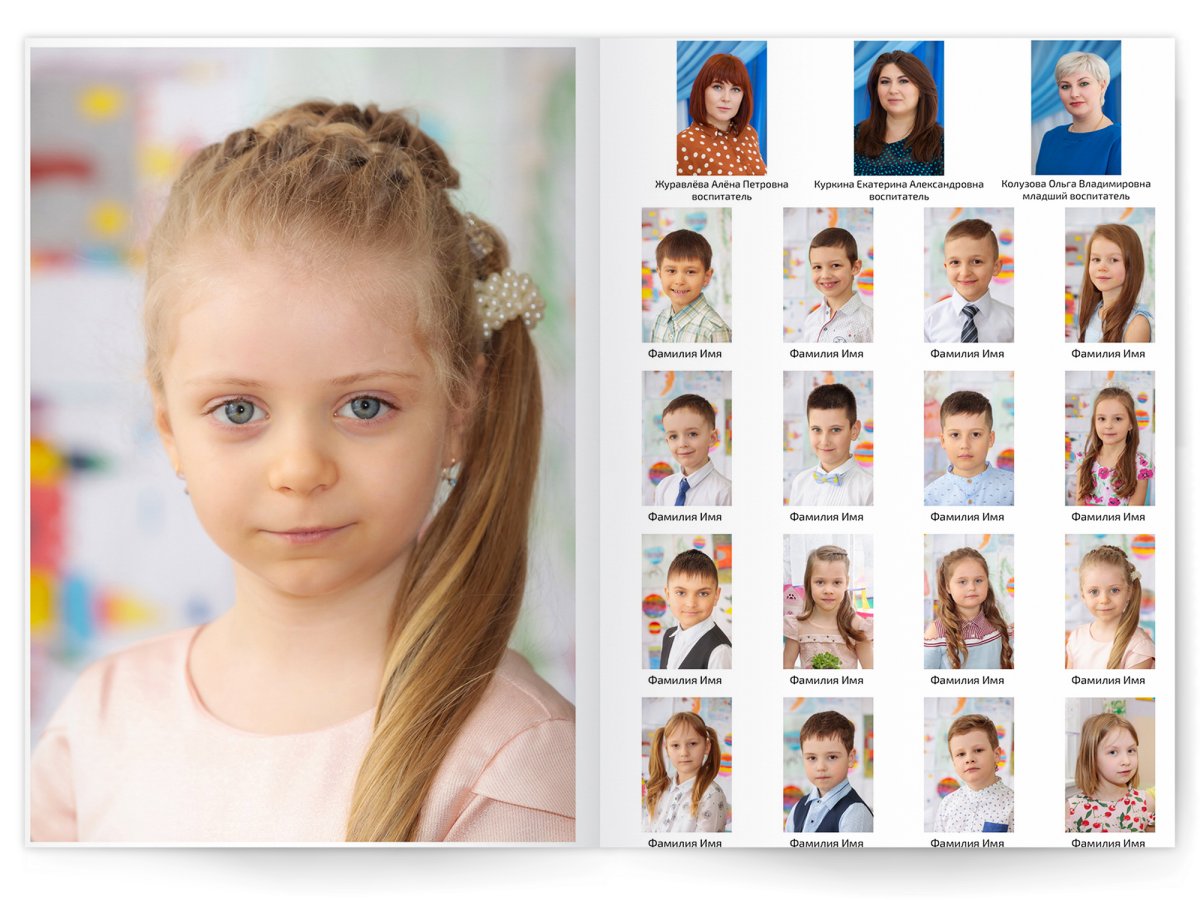 • Портреты всех детей и воспитателей на развороте или странице