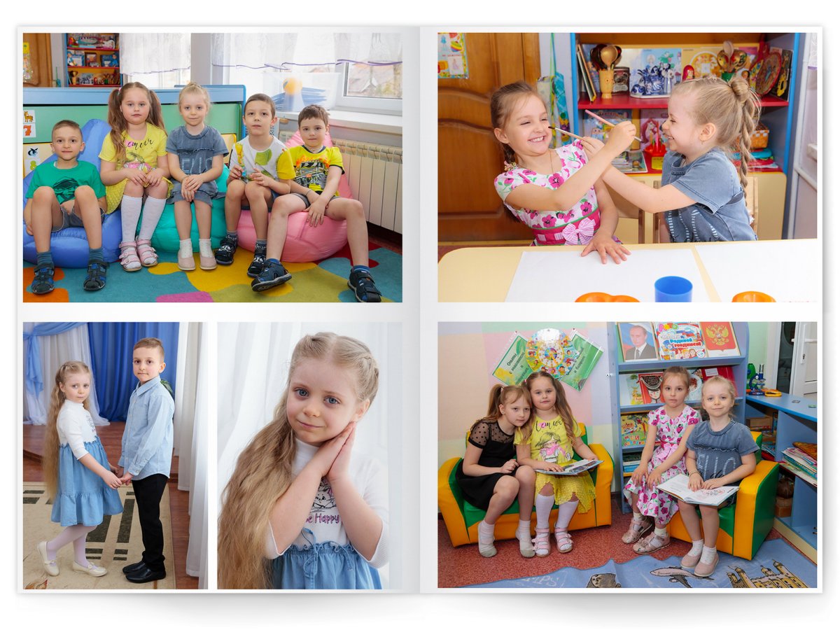 • Портреты всех детей и воспитателей на развороте